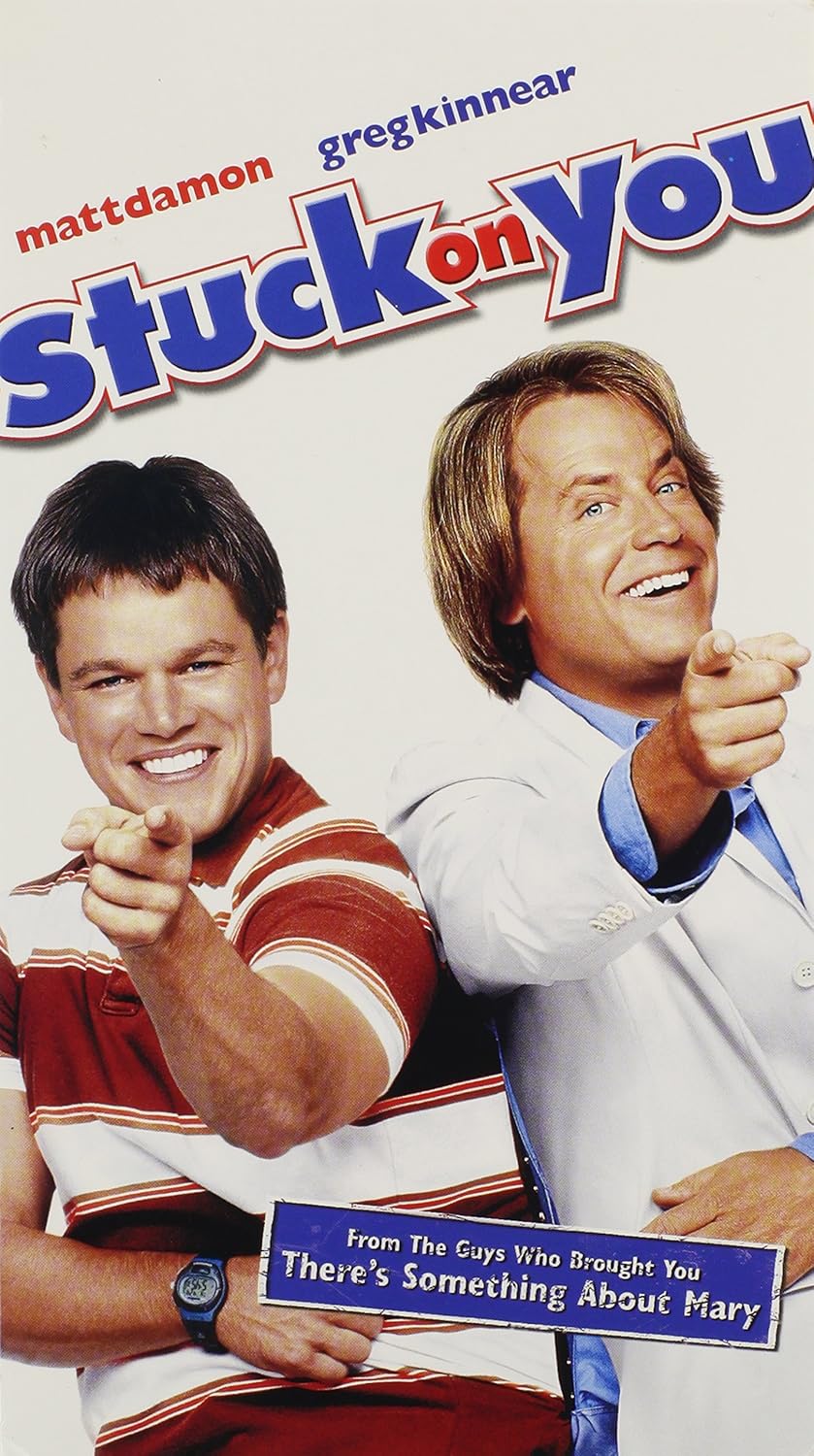 Stuck On You Year 2003 Director Bobby Farrelly Peter Farrelly Cher Stuck on You is a 2003 American comedy film written and directed by the Farrelly brothers, and starring Matt Damon and Greg Kinnear as conjoined twin brothers, whose conflicting aspirations provide both conflict and humorous situations, in particular when one of them wishes to move to Hollywood to pursue a career as an actor. Plot