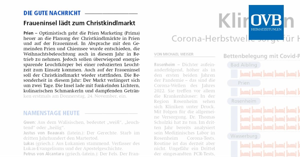 Fraueninsel lädt zum Christkindlmarkt OVB Heimatzeitungen Chiemsee - Der beliebte Christkindlmarkt auf der Fraueninsel fiel die vergangenen beiden Jahre der Corona-Pandemie zum Opfer.Künftig findet er an beiden Wochenenden einen Tag länger, also schon ab Donnerstag, statt. Die Veranstalter nutzten die Corona-Zwangspause, um das 20 Jahre alte Konzept zu üb