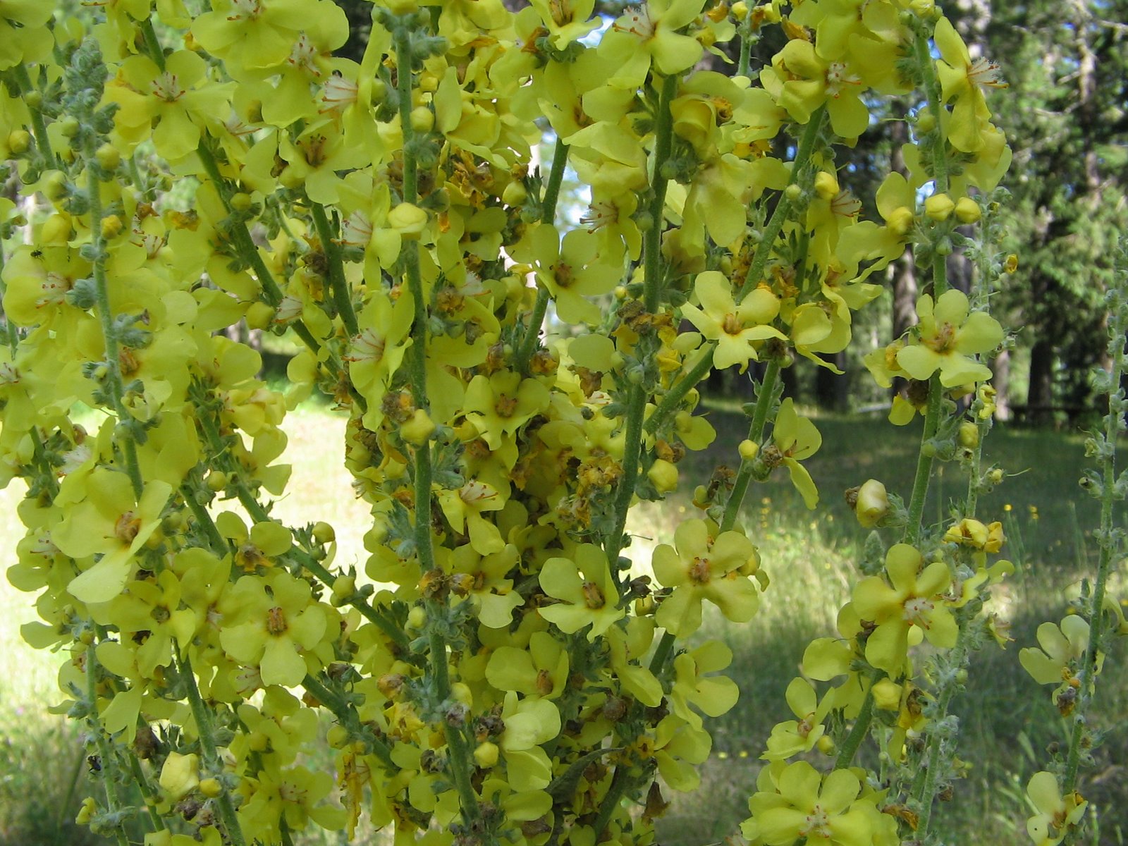 Verbascum pulverulentum / Verbasco a candelabro , Natura Mediterraneo Verbasco a candelabro (Verbascum pulverulentum). Il verbasco a candelabro ha avuto largo utilizzo nelle epoche passate. Ad esempio, gli antichi Romani usavano i suoi fiori per produrre un colorante giallo e le foglie come stoppino. Questa pianta risulta tossica per il bestiame, ed è molto visitata dalle api.
