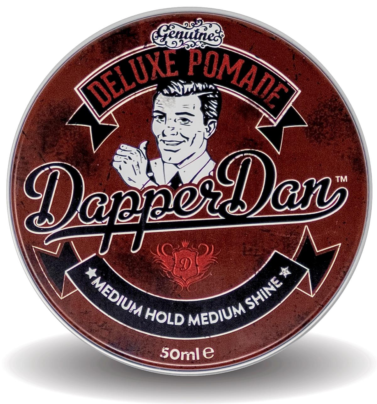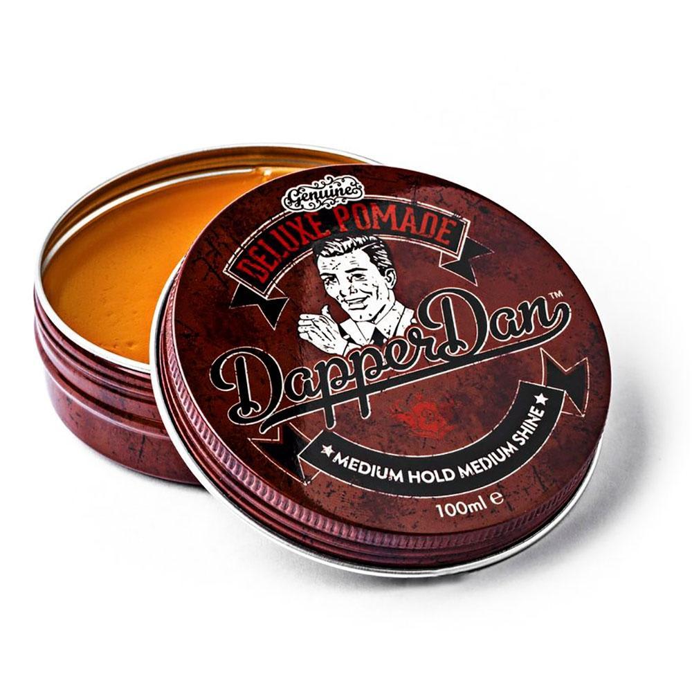 Dapper Dan Deluxe Pomade Water Based Pomade Medium Shine Pomade Deluxe pomade is versatile and can be adapted to suit your chosen style. Use a small amount on dry hair for a natural shine or simply use more pomade for that authentic 1930 s look. This product will set your style in place all day but unlike many other water based pomades it will not harden too much.
