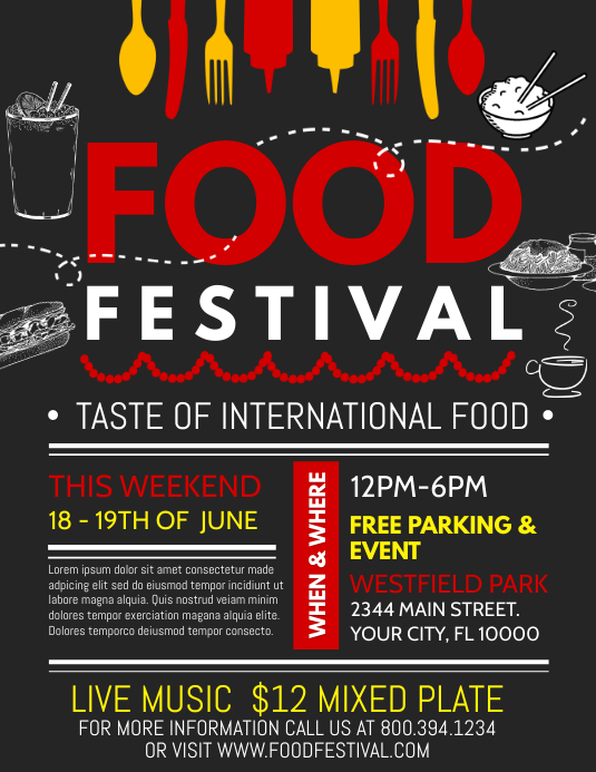 Food festival flyer with alphabet Royalty Free Vector Image Upload your first copyrighted design. You can get a $10 cash bonus. Are you looking for Food Festival templates psd or ai files? Pikbest have found 142397 free Food Festival templates of poster,flyer,card and brochure editable and printable. Remember that our ready-made templates are free for commercial use.