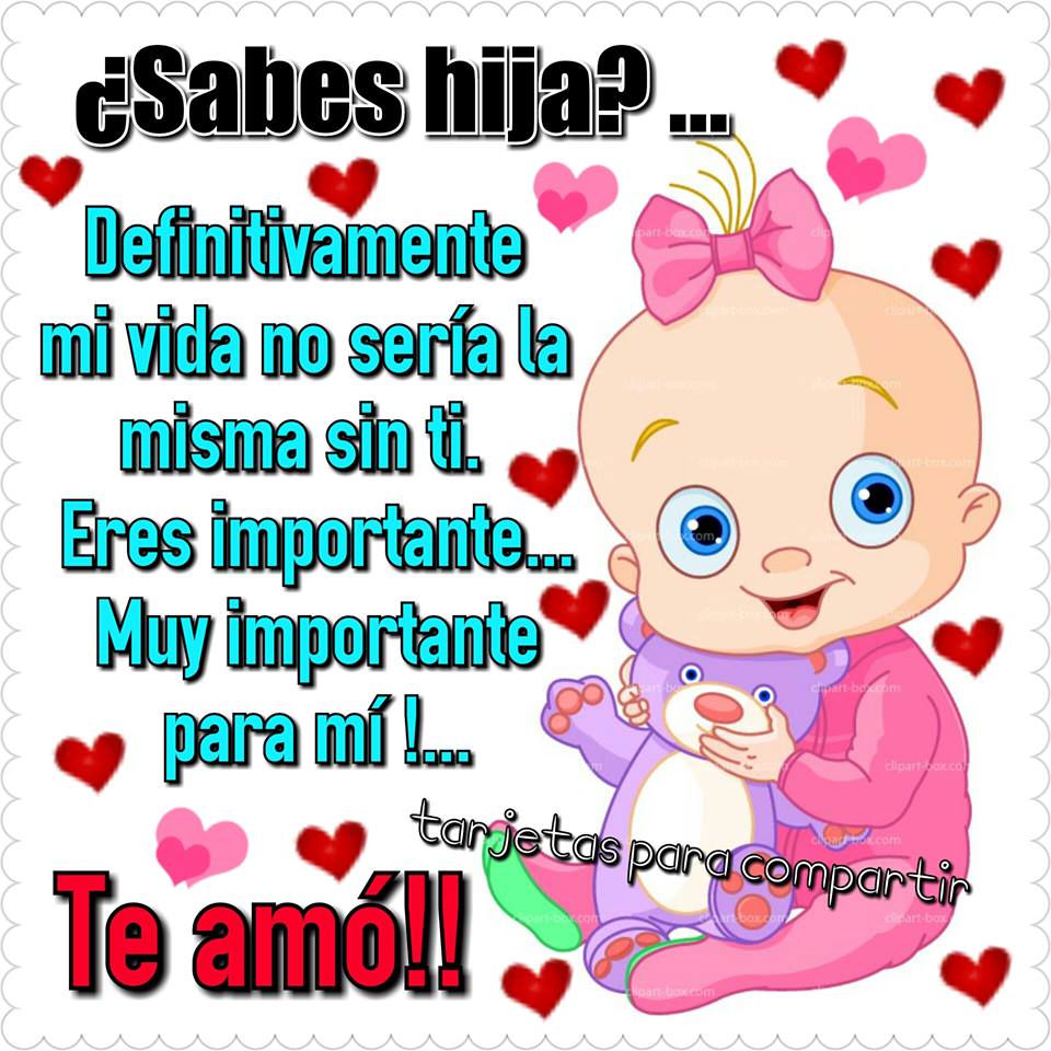 Enseñando Continuo Íntimo hija eres lo mas importante en mi vida Frases te amo hija mía. Frases para decir te amo hija mía. Cuando tenemos hijas, es normal que queramos expresarles nuestro amor a menudo. A continuación, mencionamos algunas frases que pueden ser útiles para que le digas a tu hija cuánto la quieres: «Eres lo mejor que me ha pasado en la vida, te amo hija mía» «Me siento orgullosa de.